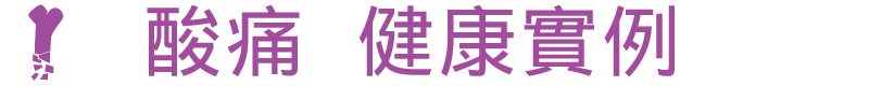 1個星期長達5年的失眠問題解決, 3個星期手骨酸痛完全消失, 3個月全身關節酸痛改善90%, 6個月更年期綜合症、多年的鼻竇炎和花粉過敏完全消失。