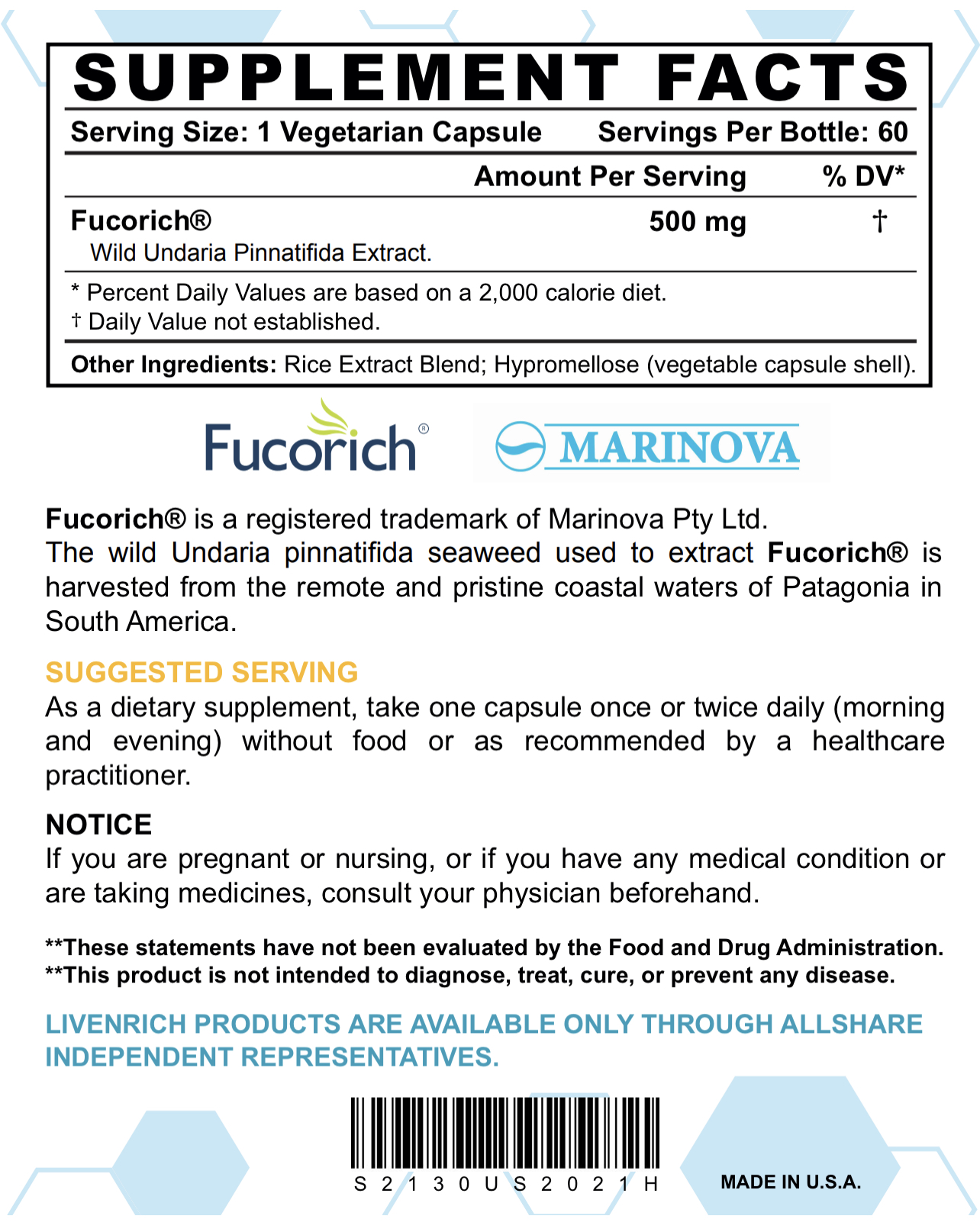 • Fucorich® 是一種獨特的生物活性海藻成分,結合了褐藻糖膠和藻類甘露醇的益處,並經過有機認證、非轉基因、純素食及不含添加劑和防腐劑。