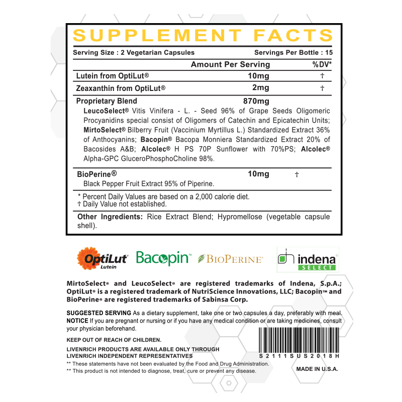有益於腦部和眼睛的草本營養精華,防治腦功能障礙、腦中風、老人癡呆症、憂鬱症、帕金森氏症、自閉症、多動症;增強記憶力、視力;改善視網膜病變、黃斑退化、白內障、青光眼、夜盲、散光及各種眼疾;改善神經衰弱如疲倦、失眠和焦慮,提高工作效能;促進學習記憶;抗腦缺血損傷。