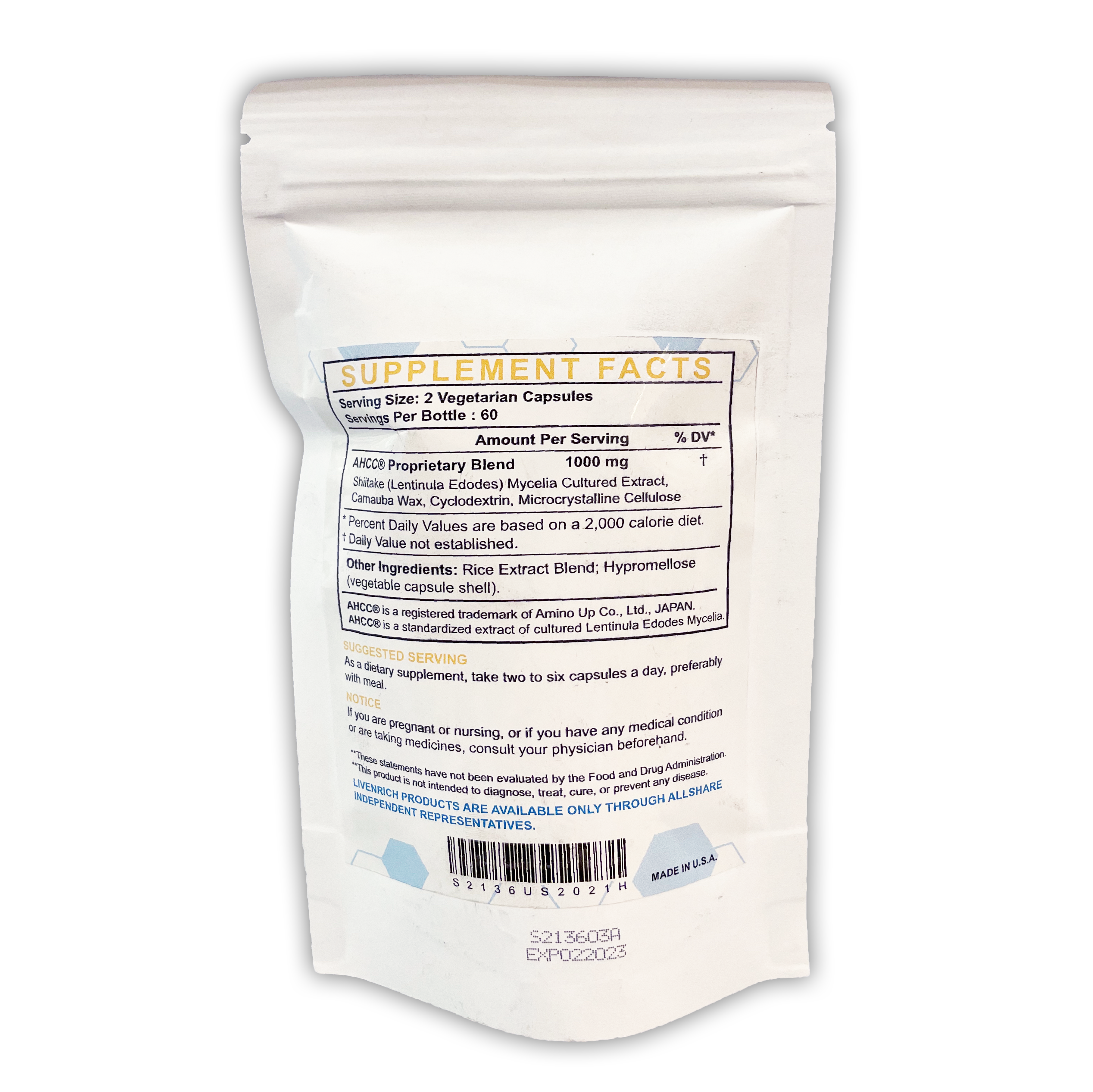 AHCC® 是日本Amino Up Co., Ltd.的註冊商標,美國專利號#5,756,318; #6,831,067